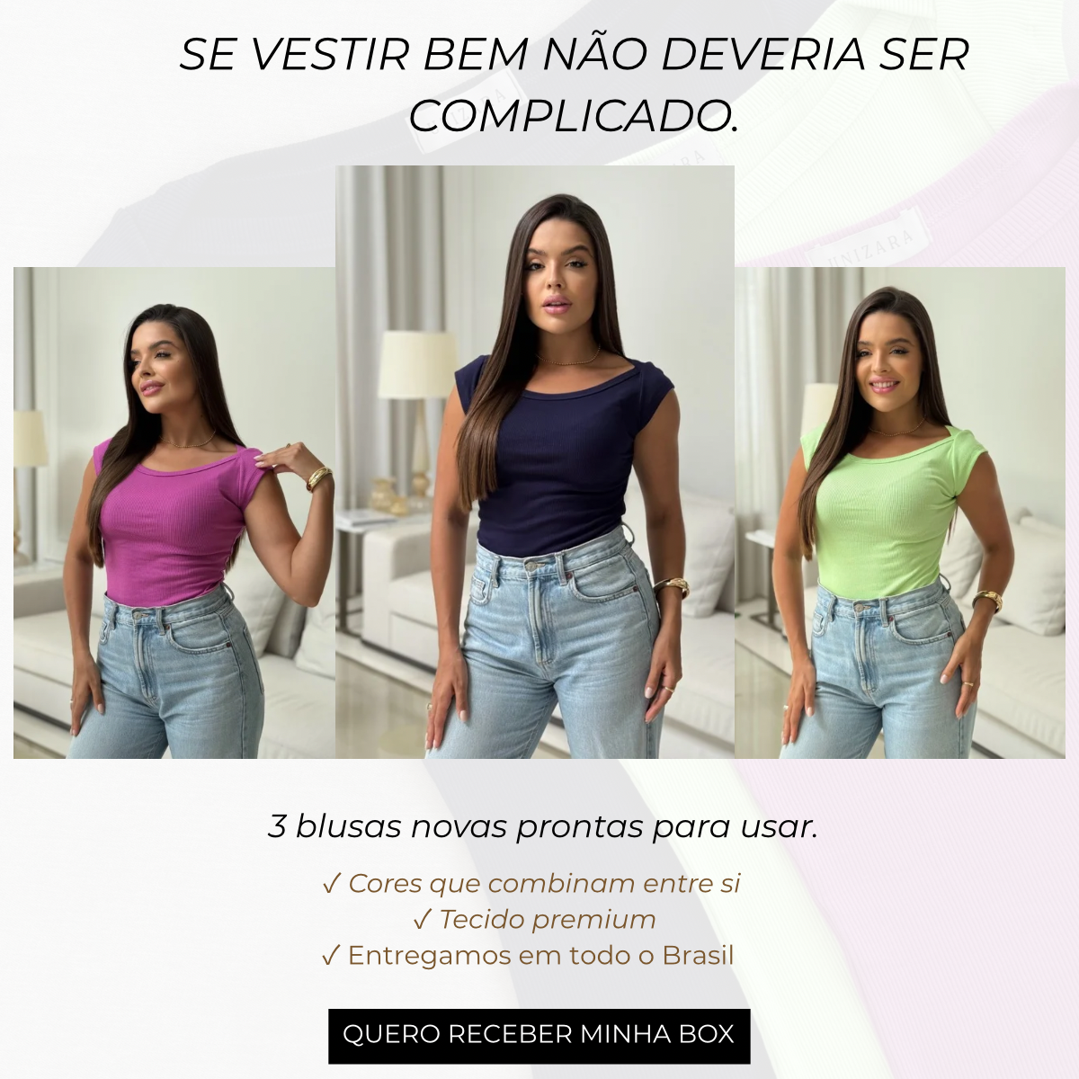 Todo mês você recebe 3 blusas novas
